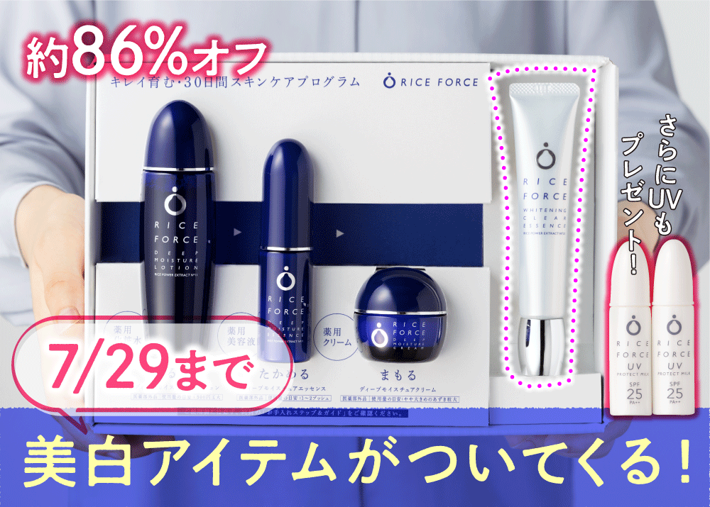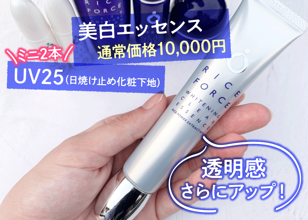 信じられない!人気ライスフォースの初回限定セットで、10,000円の美白*エッセンス付いてくる!おまけの※7/29まで!