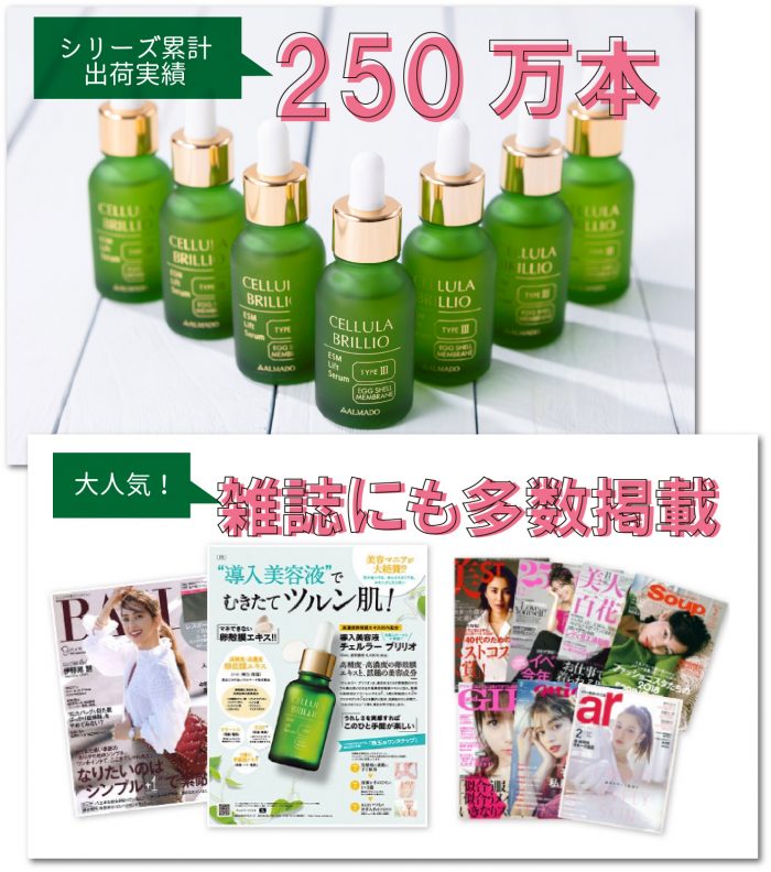このチェルラーブリリオ、シリーズ累計250万本も売れている、知る人ぞ知る名品コスメなんです!