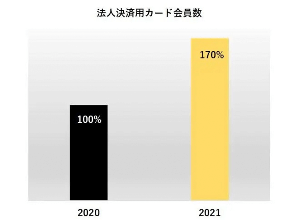 実際、ここ1.2年で法人用カード会員の伸びも急成長しており、その中でもコロナ禍というシビアな経済情勢でありながら、グレードの高いこの法人用ゴールドカード会員が1.7倍にも増えているんだとか。