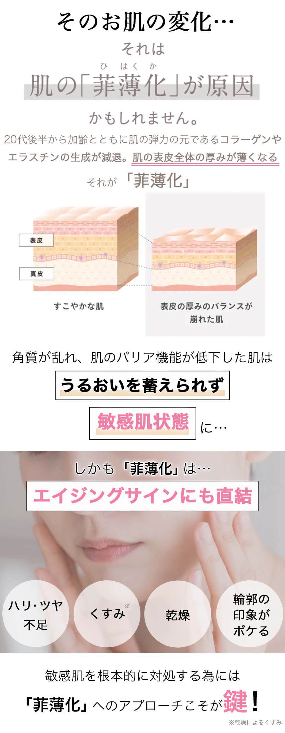 *2年齢に応じたケアのこと *3 保湿成分:セラミドEOP、NG、AG、AP *4 保湿成分 *5 (石油系界面活性剤、鉱物油、シリコン、着色料、合成香料、パラベン、アルコール)不使用 *6 うるおいを角層に保つこと